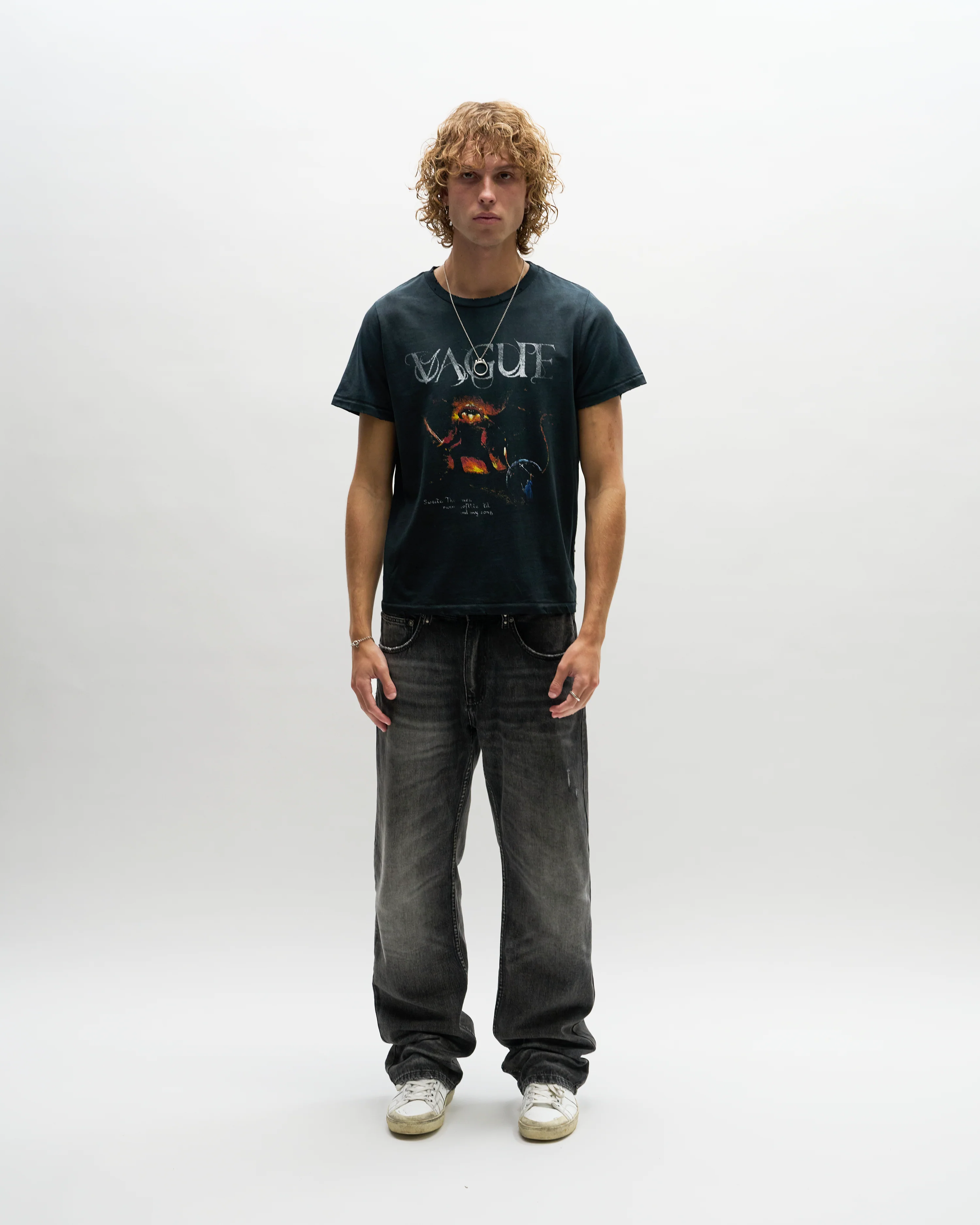 Inspired by 70's graphic tees, our tees have a narrower body and a shorter length, falling perfectly on your belt. The custom milled 100% cotton fabric is lightweight (150gsm) and flowy. Single stitch hems of course.