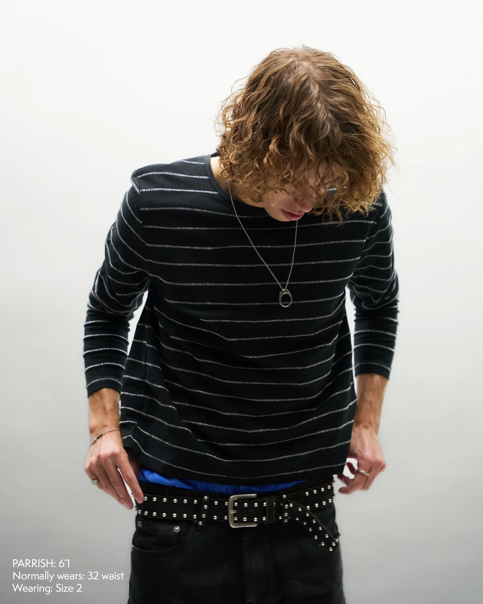 If you look closely, the studs got little stars on em. 100% genuine leather with a cracked finish, logo engraved antique silver buckle + hardware. Each belt comes in a linen dust bag + box.